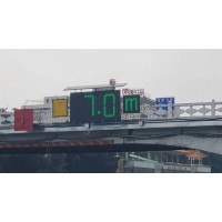 橋梁實時凈高LED示屏安裝于橋孔靠左或靠右1/4凈空寬度的位置上,安裝位置應避免與橋涵標發(fā)生干擾。通過遙測實時水位實時尺寸,然后計算出實時通航凈高尺寸。